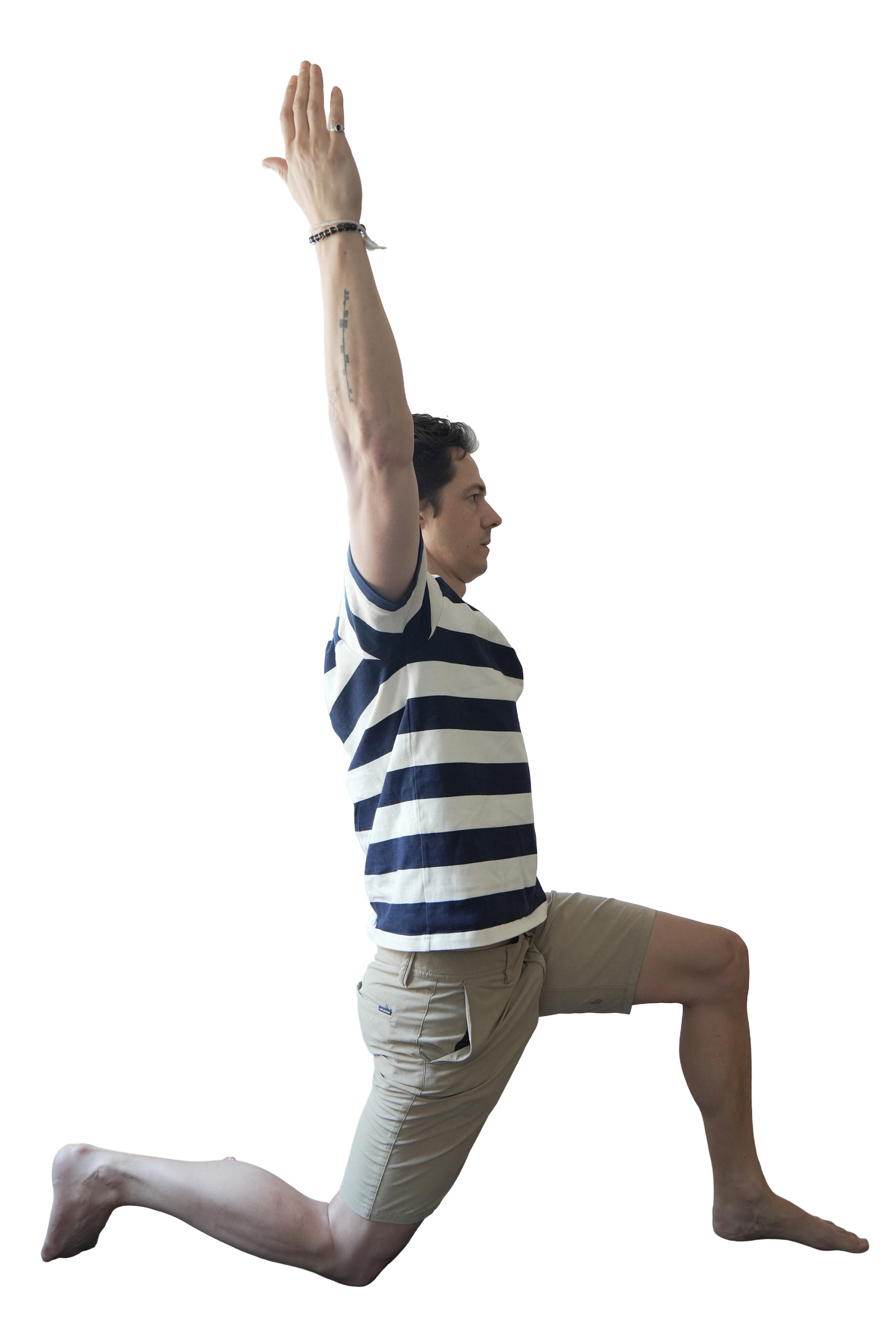 Step one foot forward, lower the back knee to the ground, and sink into the front hip. For some people, the real damage from sitting hides in the hip flexors. They shorten and pull the pelvis forward into that anterior tilt. The low lunge helps. Ease into it, hold it long enough and you can feel the front of the hip releasing its grip on your whole lower back.